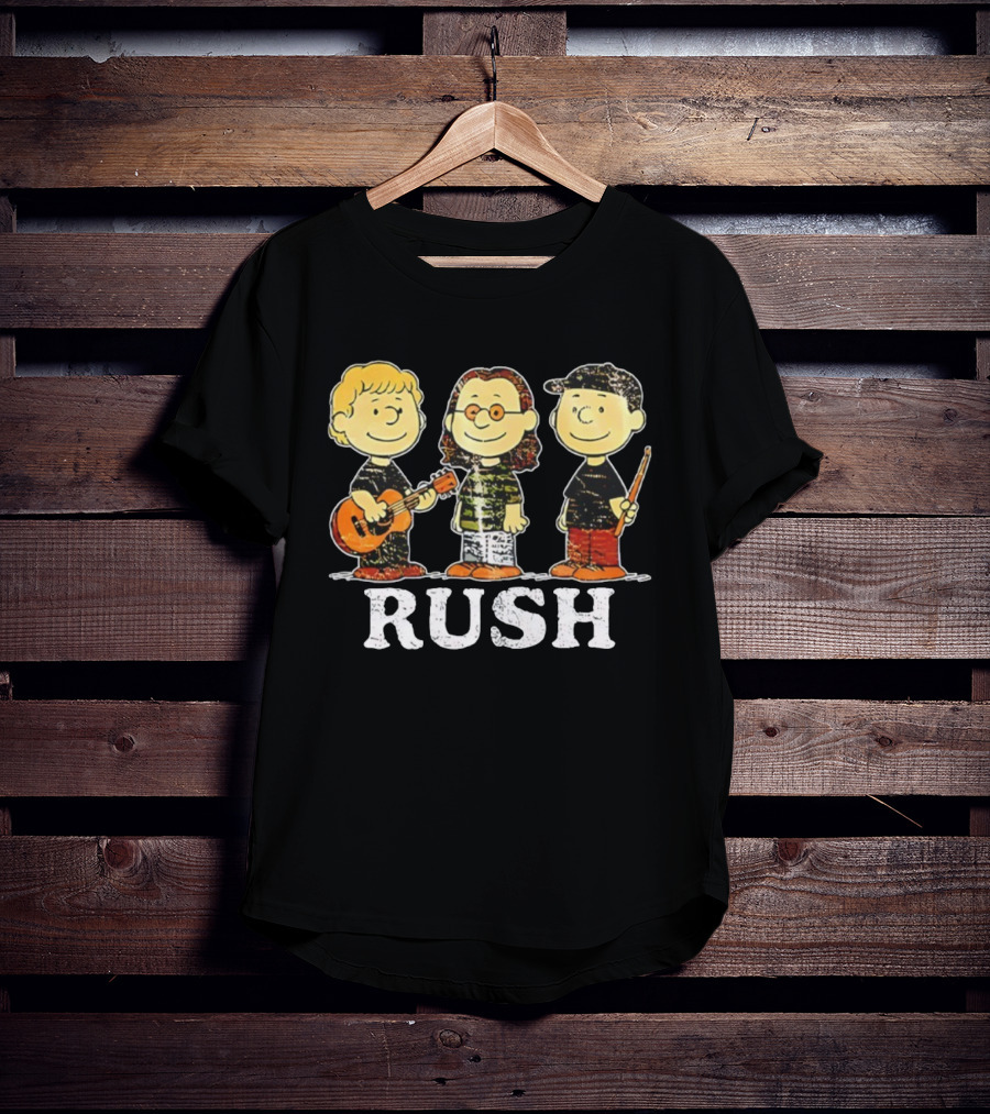RUSH Peanuts Crossover With Geddy Lee, Alex Lifeson, Neil Peart Charlie Brown Style T-Shirt