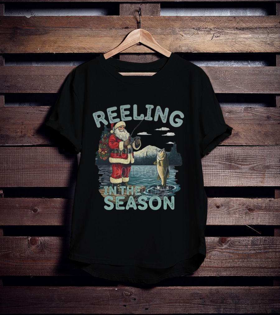 Reeling In The Season Fishing Santa Claus Merry Christmas T-Shirt