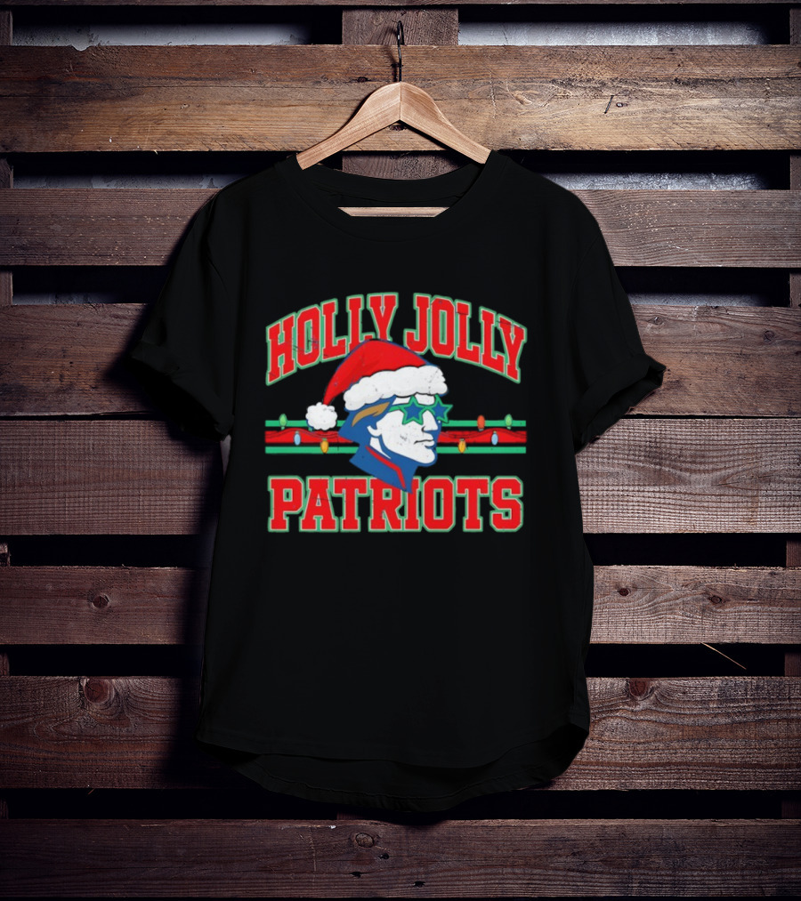 Patriots Christmas Holly Jolly Santa Hat Lights T-Shirt