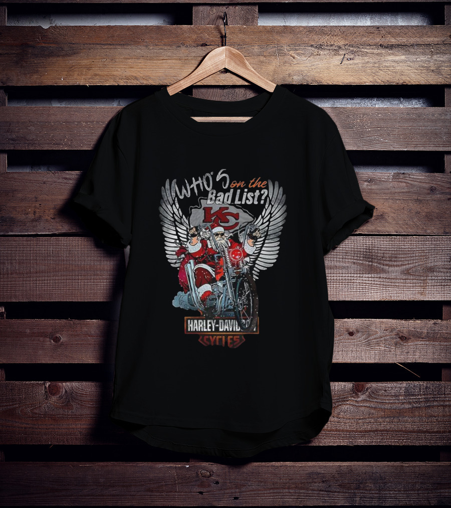 Kansas City Chiefs Santa Who's On The Bad List Harley Davidson Cycles Chiefs T-Shirt