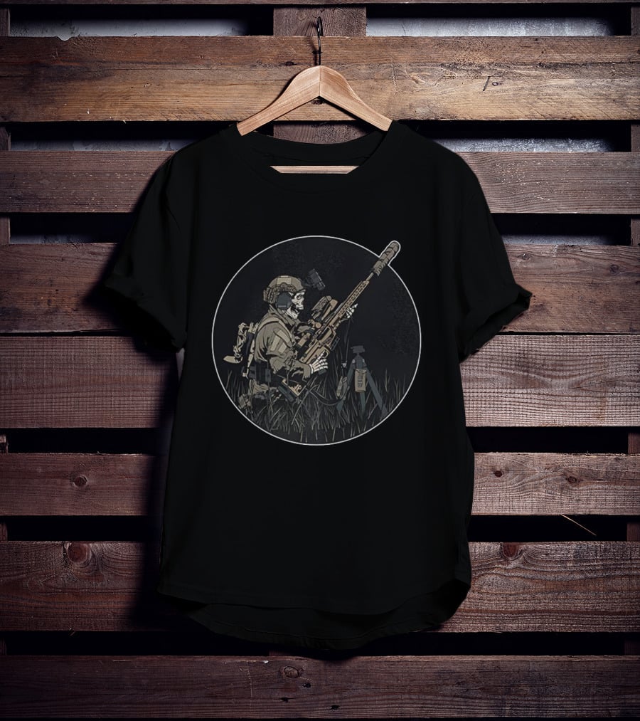 Sniper Skeleton Tactical Precision In Round Frame T-Shirt