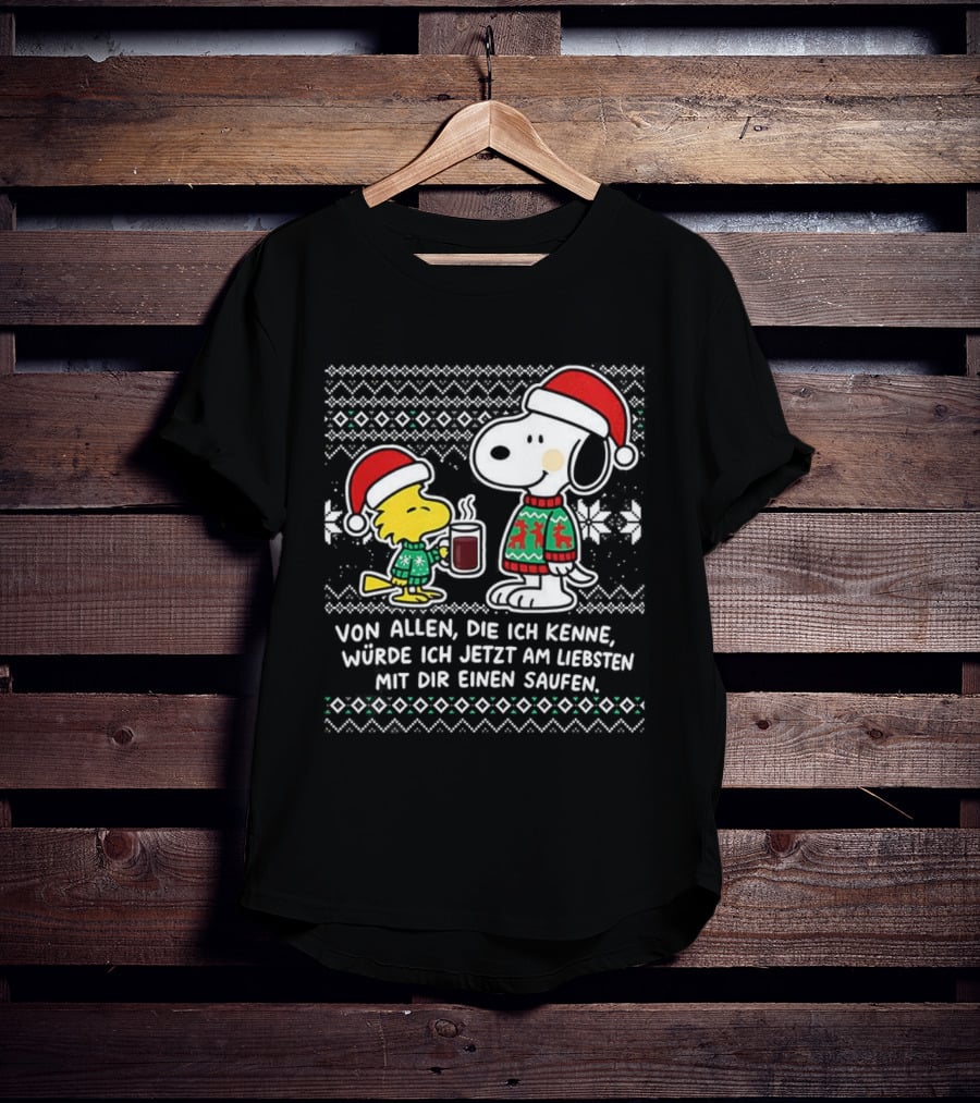 Snoopy Woodstock Weihnachten Mit Dir Einen Saufen Weihnachtspullover T-Shirt
