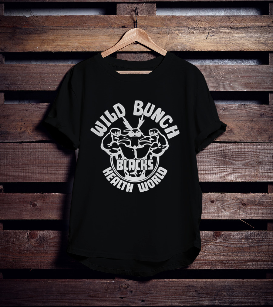 Wild Bunch Blacks Health World Fitness Logo T-Shirt