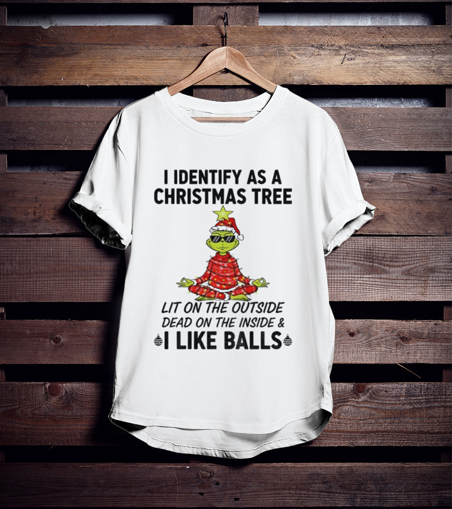 I Identify As A Christmas Tree Lit On The Outside Dead On The Inside I Like Balls Merry Christmas T-Shirt