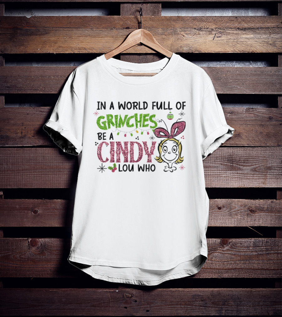 In A World Full Of Grinches Be A Cindy Lou Who Christmas Glitter Grinch Holiday Cheer T-Shirt