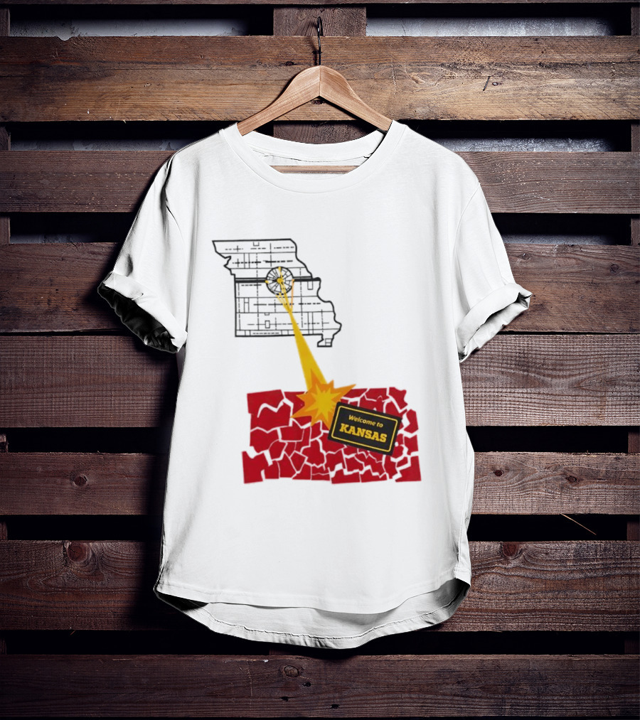 Missouri Map Blast Welcome To Kansas Sign Explosion T-Shirt