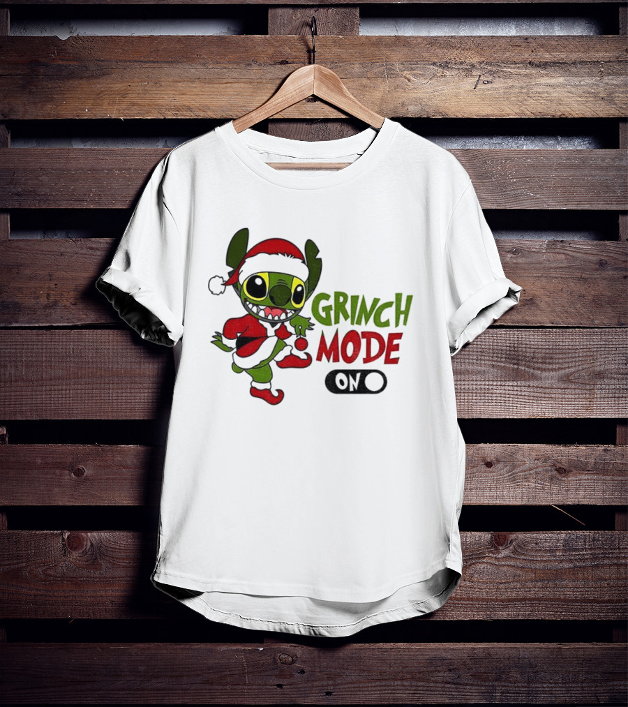 Stitch Grinch Santa Grinch Mode Merry Christmas Turn On T-Shirt