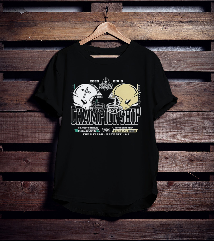 2025 Michigan HS Football Gr West Catholic Falcons Vs Notre Dame Prep Fighting Irish Championship Ford Field Detroit T-Shirt