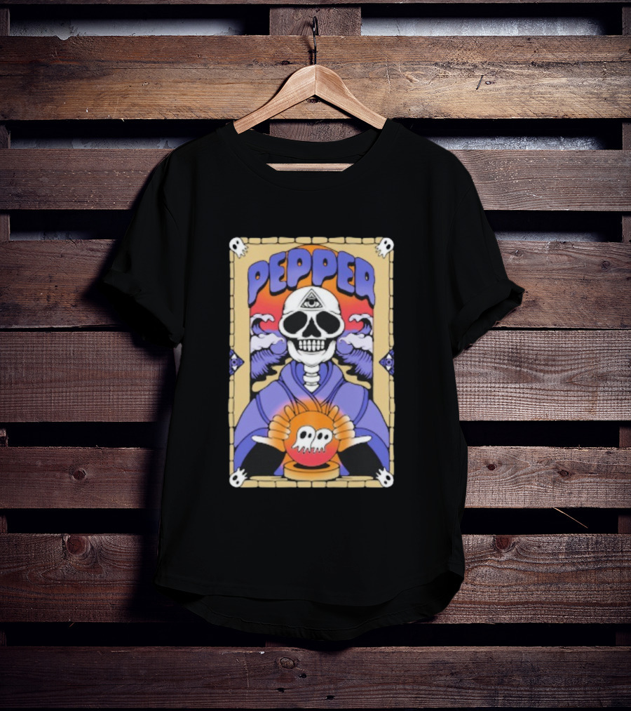 Pepper Skull Fortune Teller Crystal Ball And All-Seeing Eye T-Shirt