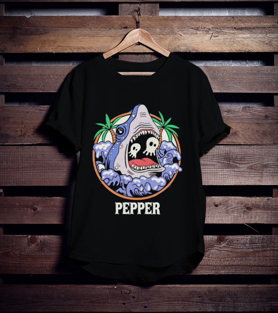 Skull-Waving Shark Attack Pepper Ocean Adventure T-Shirt