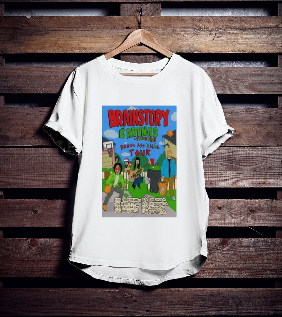 Brainstory É Arenas Twin Seas Broke Ass Xmas Tour Santa Barbara San Jose Los Angeles 2025 T-Shirt