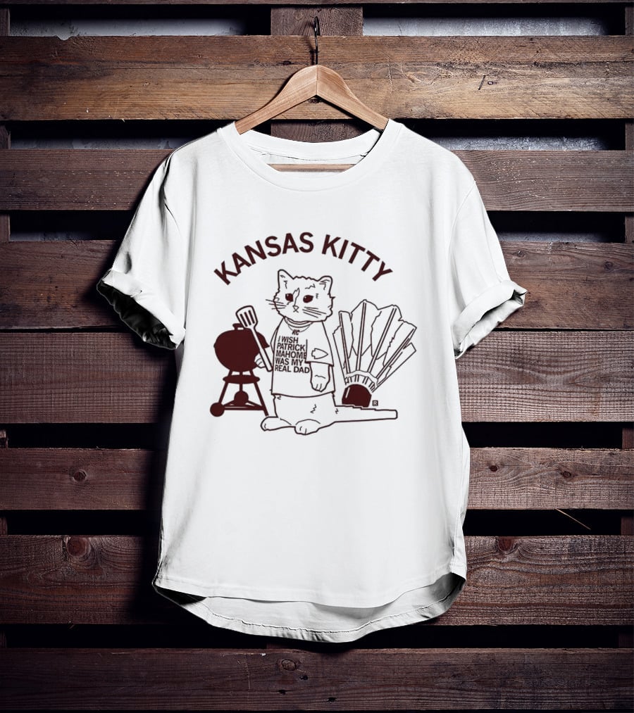 Kansas Kitty I Wish Patrick Mahomes Was My Real Dad Grill Cat Fan Meme T-Shirt